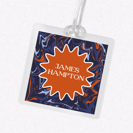 Navy and Orange Marble Bag Tag, Luggage Tag, Laminated Bag Tag