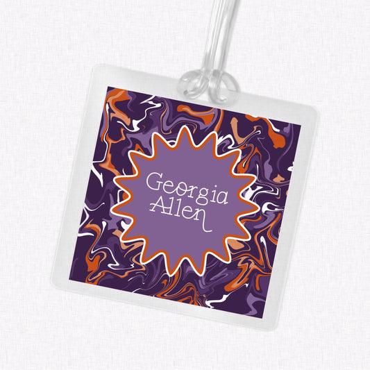 Purple and Orange Marble Bag Tag, Luggage Tag, Laminated Bag Tag