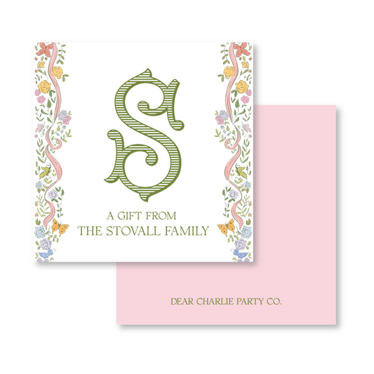 Floral Monogram Gift Tag, Gift Stickers, Enclosure Cards