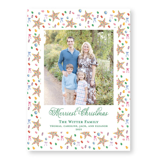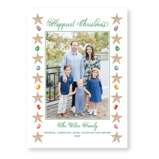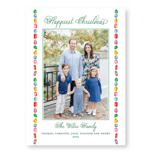 PRINTED Exclusive Art Holiday Card | Christmas Jewels Border | 5x7 Holiday Photo Card with Envelope