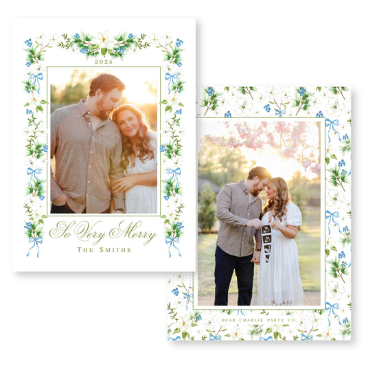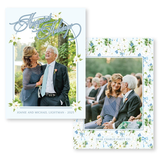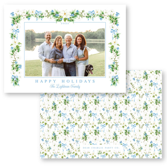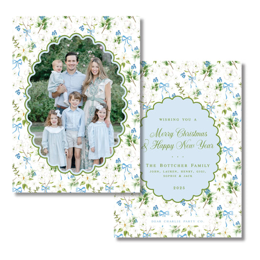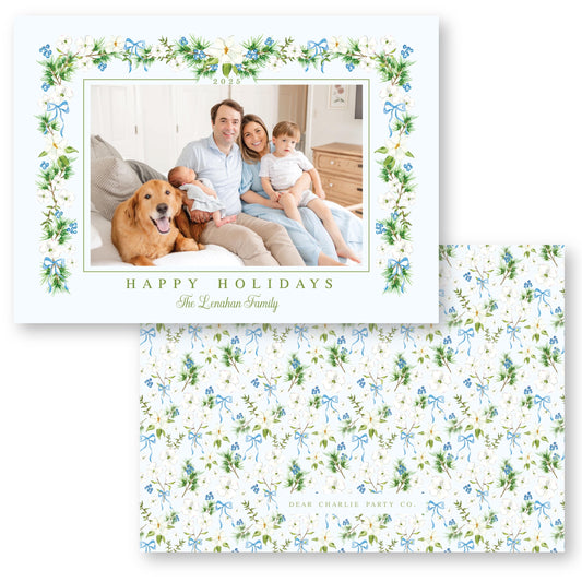 Merry Magnolias in Blue | 5x7 Holiday Photo Card with Envelope