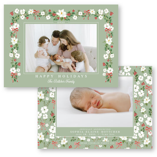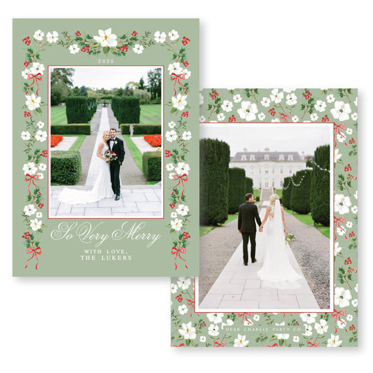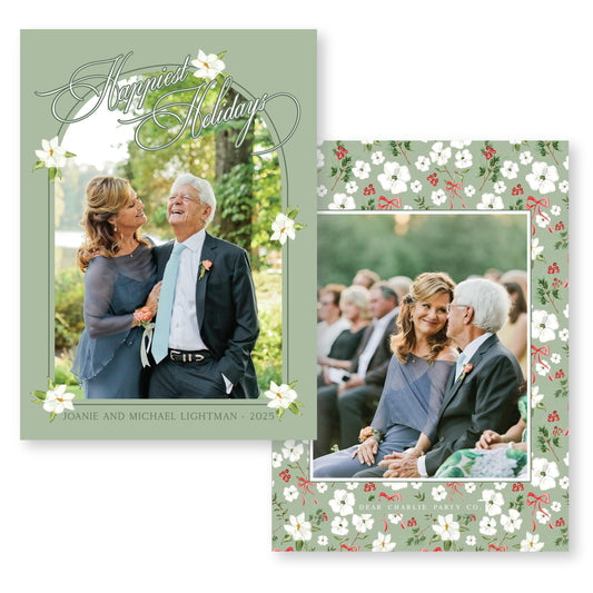 Merry Magnolias Arch in Green | 5x7 Holiday Photo Card with Envelope