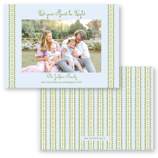Greek Key Border Blue Holiday Card | 5x7 Holiday Photo Card with Envelope