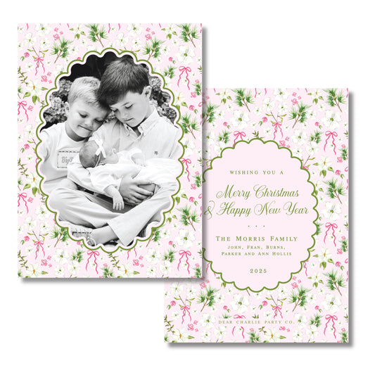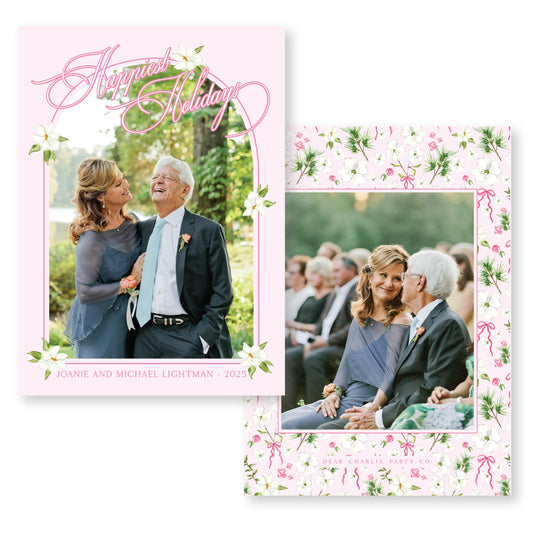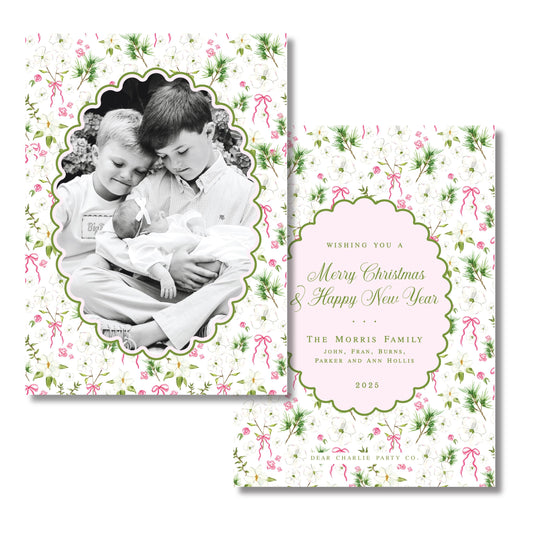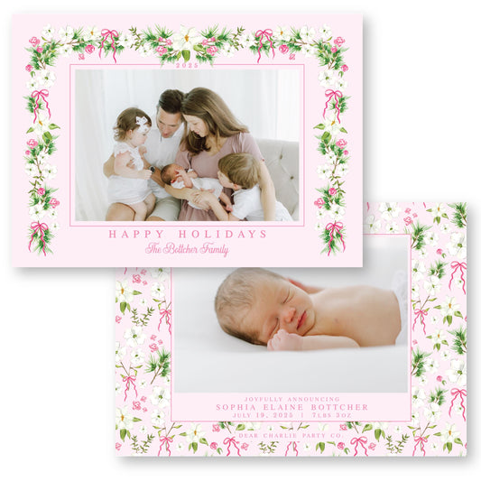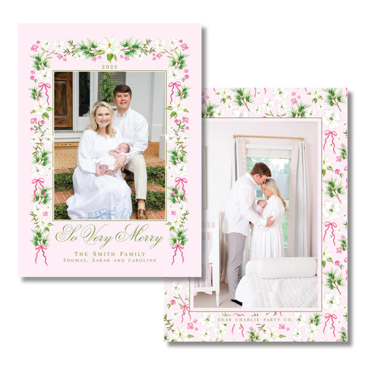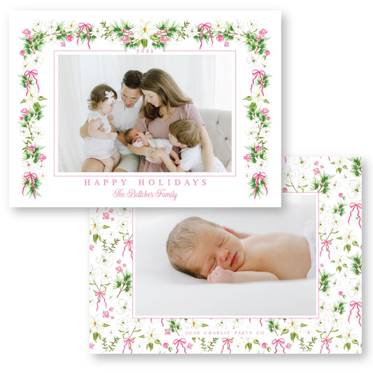Merry Magnolias in Pink | 5x7 Holiday Photo Card with Envelope