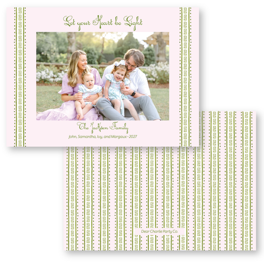 Greek Key Border Pink Holiday Card | 5x7 Holiday Photo Card with Envelope