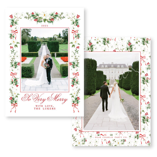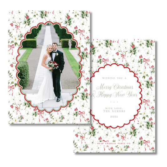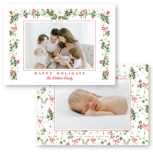 Merry Magnolias in Red | 5x7 Holiday Photo Card with Envelope