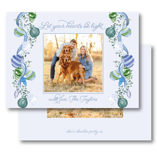 Bauble and Bright Horizontal in Blue | 5x7 Holiday Photo Card with Envelope