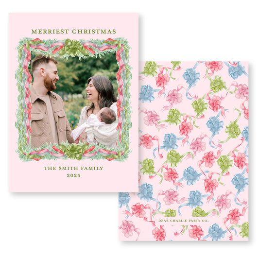 Velvet Trimmings Holiday Card in Pink | 5x7 Holiday Photo Card with Envelope