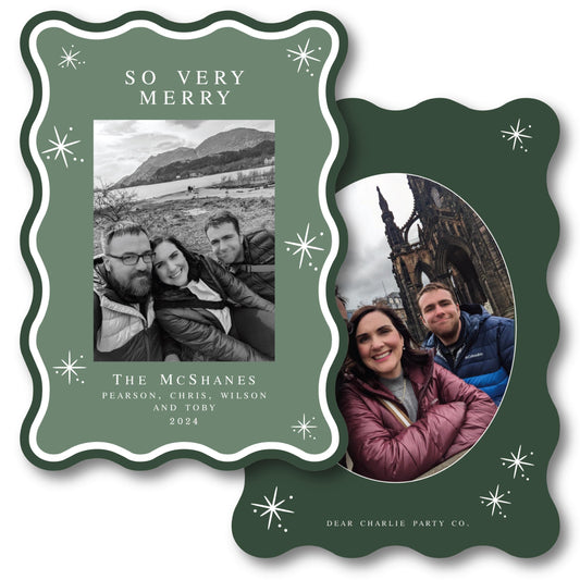 Wavy Wishes Die-Cut Holiday Card in Sage & Forrest, Holiday Cards, Printed Holiday Cards, Christmas Cards