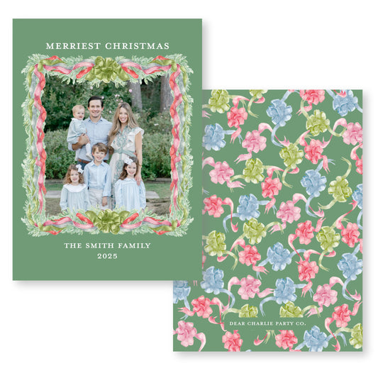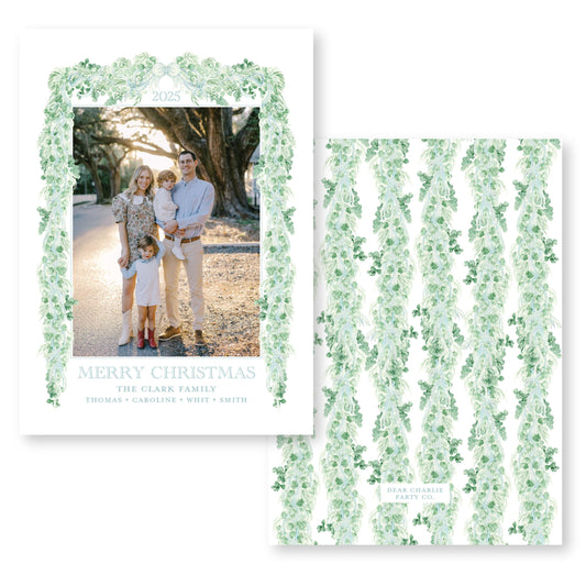 Velvet Trimmings Holiday Card in Green | 5x7 Holiday Photo Card with Envelope