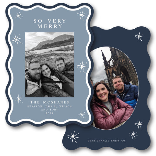 Wavy Wishes Die-Cut Holiday Card in Navy, Holiday Cards, Printed Holiday Cards, Christmas Cards