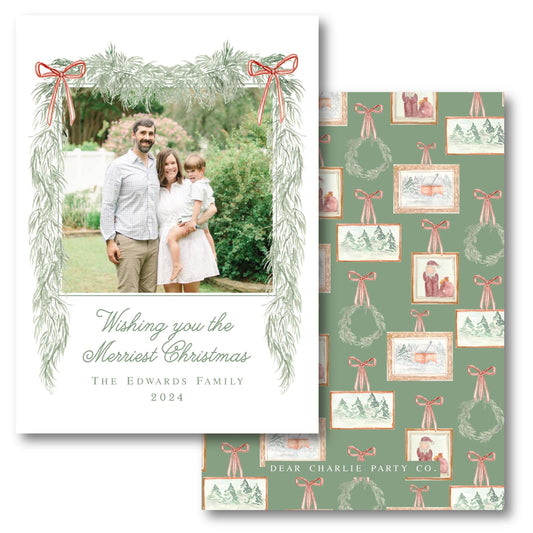 Decked in Bows Frame Card | 5x7 Holiday Photo Card with Envelope
