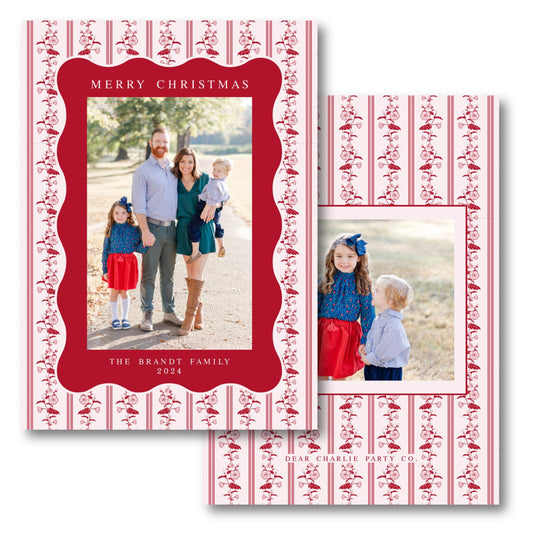 Exclusive Art | Reindeer, Nutcrackers and Ribbons Pink | 5x7 Holiday Photo Card with Envelope