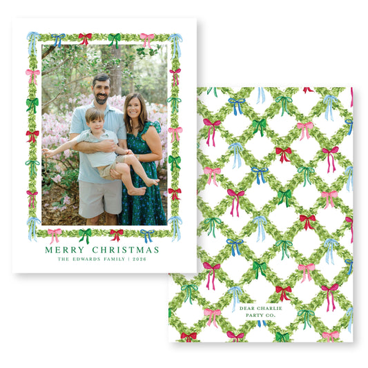 Decked in Bows Card | 5x7 Holiday Photo Card with Envelope