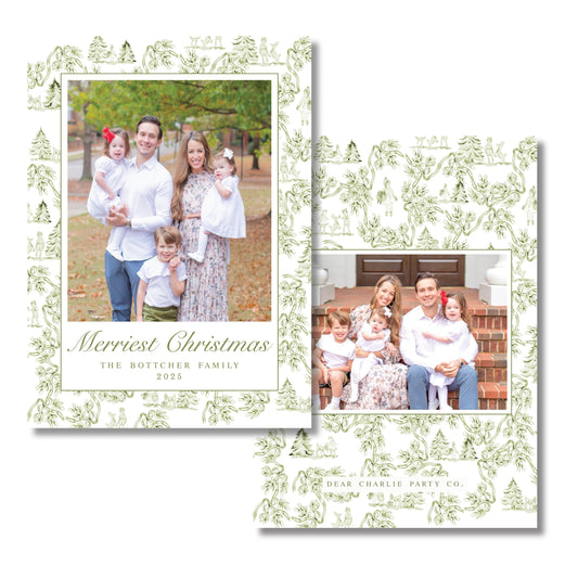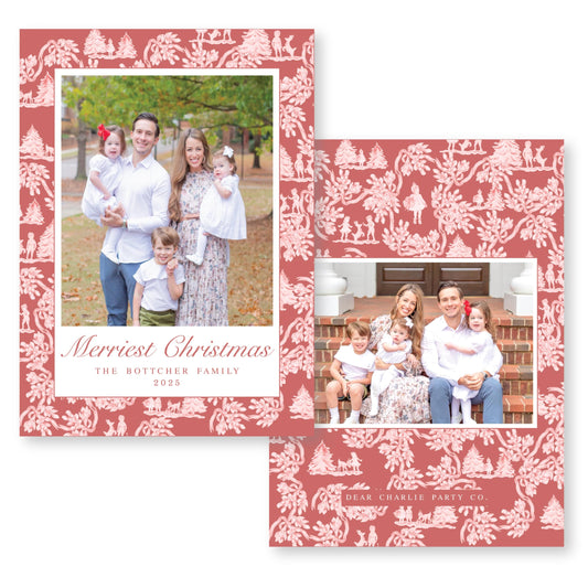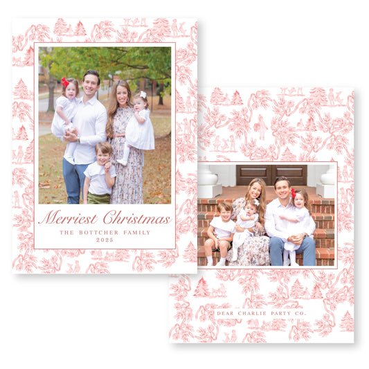 Holiday Toile Christmas Card | 5x7 Holiday Photo Card with Envelope