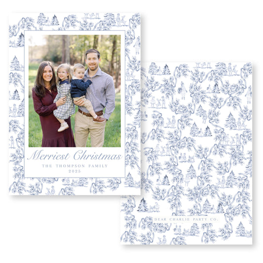 Holiday Toile Christmas Card in White and Blue | 5x7 Holiday Photo Card with Envelope
