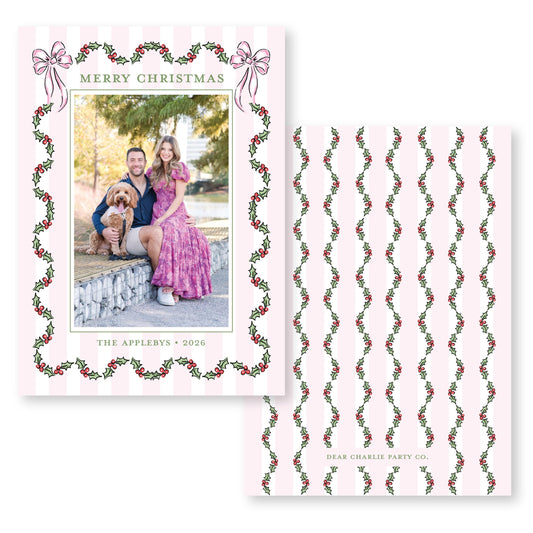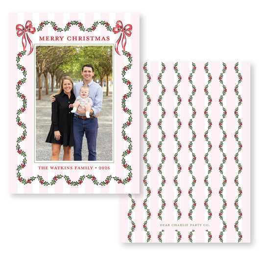 Holly Jolly Stripes in Pink | 5x7 Holiday Photo Card with Envelope