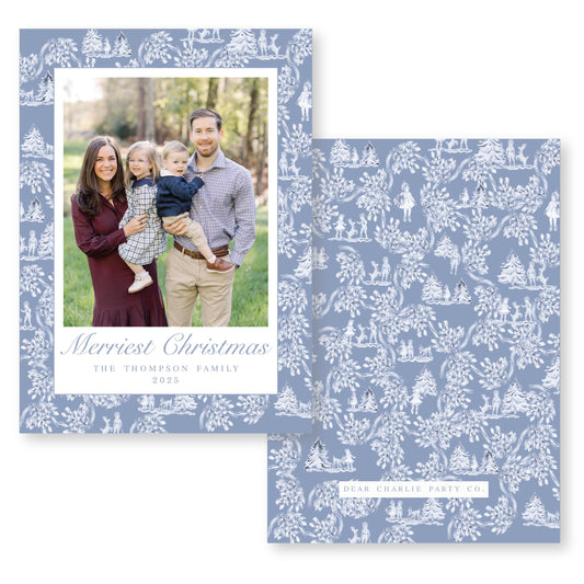 Holiday Toile Christmas Card, Blue | 5x7 Holiday Photo Card with Envelope