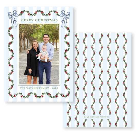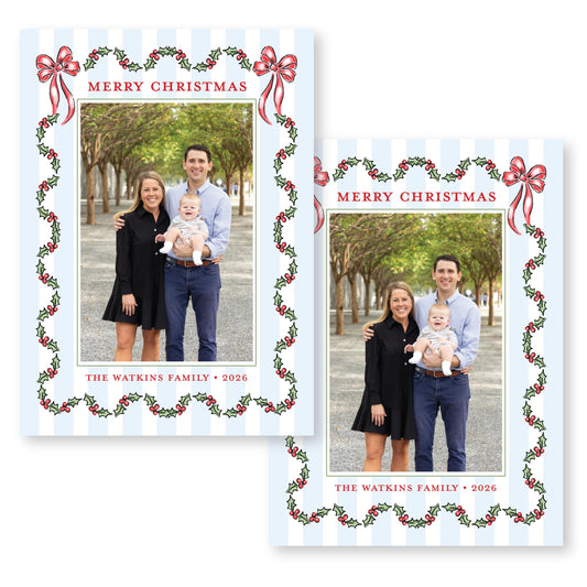 Holly Jolly Stripes in Blue | 5x7 Holiday Photo Card with Envelope
