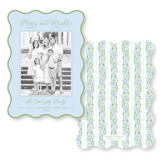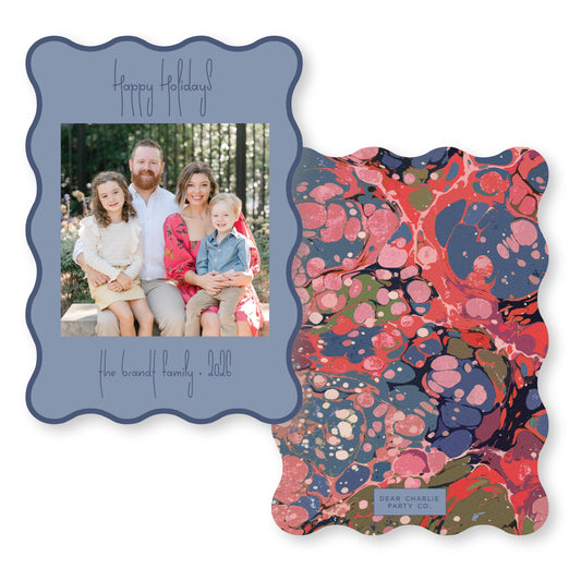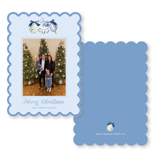 PRINTED Die Cut Holiday Card | Holiday Blues Scallop Card | 5x7 Holiday Photo Card with Envelope
