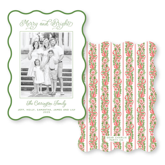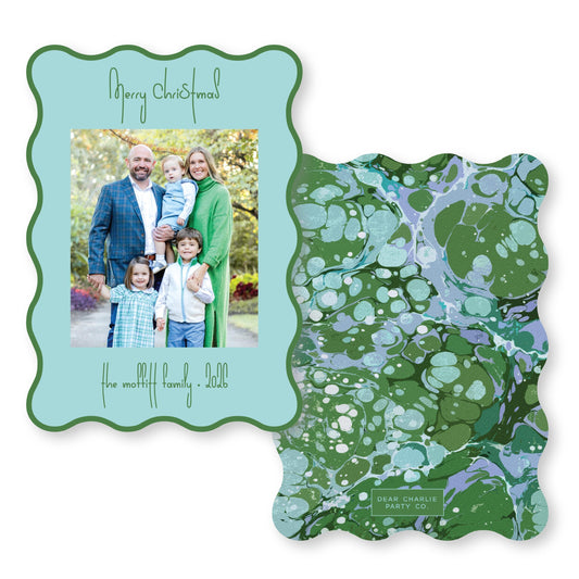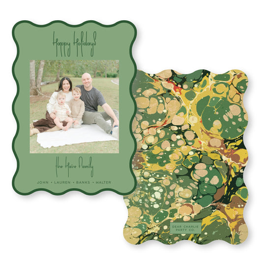 PRINTED Die Cut Holiday Card | Swirly Season in Green Wavy Card | 5x7 Holiday Photo Card with Envelope