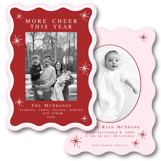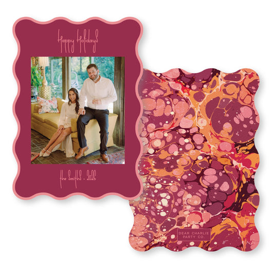 PRINTED Die Cut Holiday Card | Swirly Season in Berry Wavy Card | 5x7 Holiday Photo Card with Envelope