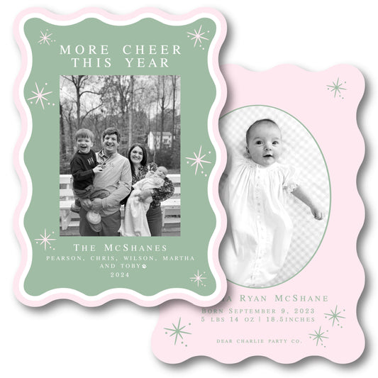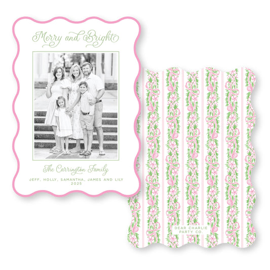 PRINTED Die Cut Holiday Card | Holiday Hues in Pink and Sage | 5x7 Photo Card with Envelope