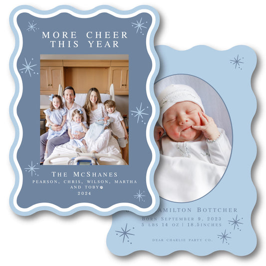 PRINTED Die Cut Holiday Card | Swirly Season in Blue Wavy Card | 5x7 Holiday Photo Card with Envelope