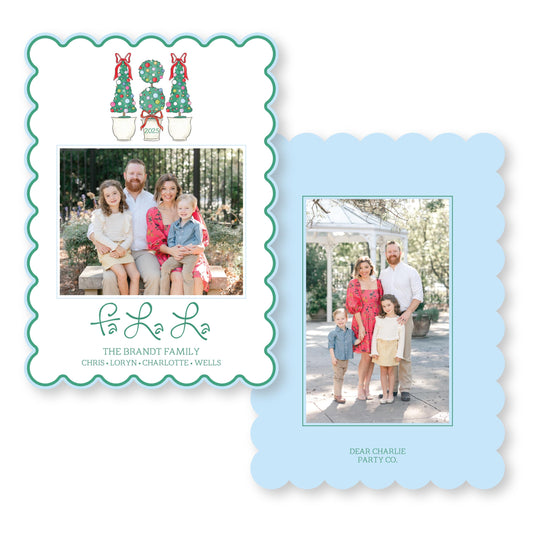 PRINTED Die Cut Holiday Card | Tis the Topiary Scallop Card | 5x7 Holiday Photo Card with Envelope