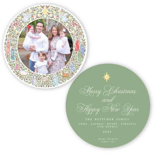 PRINTED Die-Cut Holiday Card | The Nativity Story Circle | Circle Holiday Photo Card with Envelope