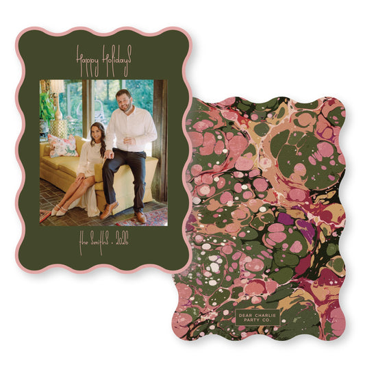 PRINTED Die Cut Holiday Card | Swirly Season in Aubergine and Army Wavy Card | 5x7 Holiday Photo Card with Envelope