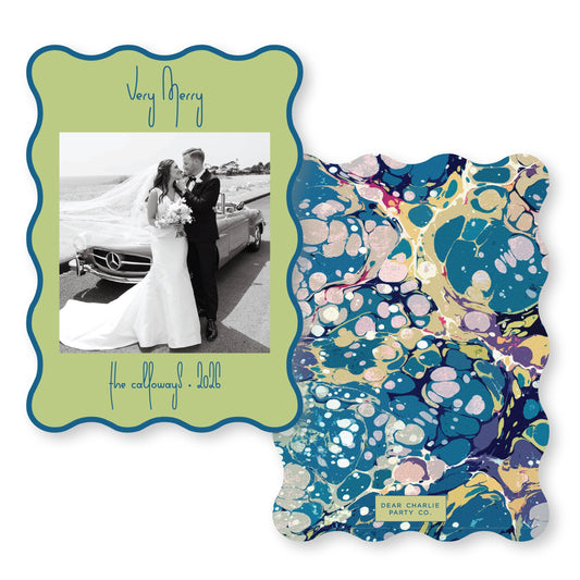 PRINTED Die Cut Holiday Card | Swirly Season in Lakeside Wavy Card | 5x7 Holiday Photo Card with Envelope