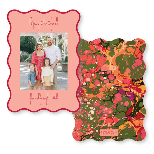 PRINTED Die Cut Holiday Card | Swirly Season in Peach Wavy Card | 5x7 Holiday Photo Card with Envelope