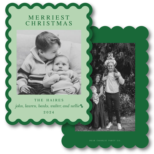 PRINTED Die Cut Holiday Card | Holiday Hues in Green | 5x7 Photo Card with Envelope