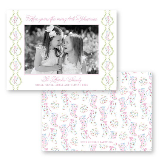 Pretty Little Christmas Stockings Card | 5x7 Holiday Photo Card with Envelope