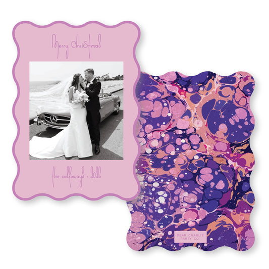 PRINTED Die Cut Holiday Card | Swirly Season in Purple Wavy Card | 5x7 Holiday Photo Card with Envelope