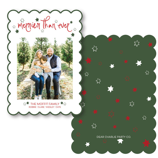 Starry Night Scallop Card in Traditional Christmas Colors | 5x7 Holiday Photo Card with Envelope