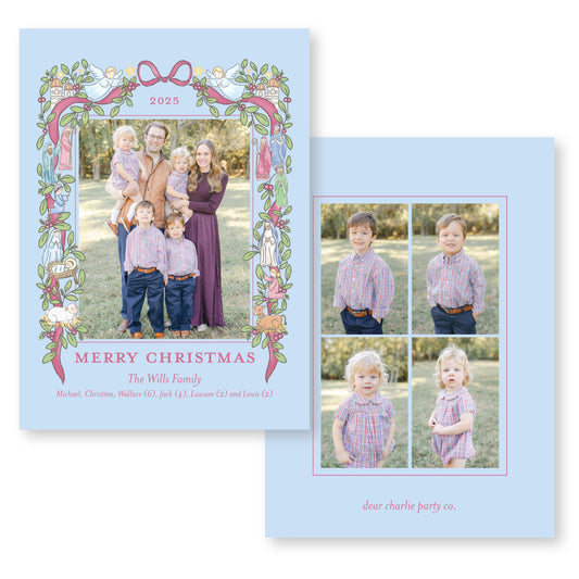 The Nativity Story in Berry and Blue | 5x7 Holiday Photo Card with Envelope