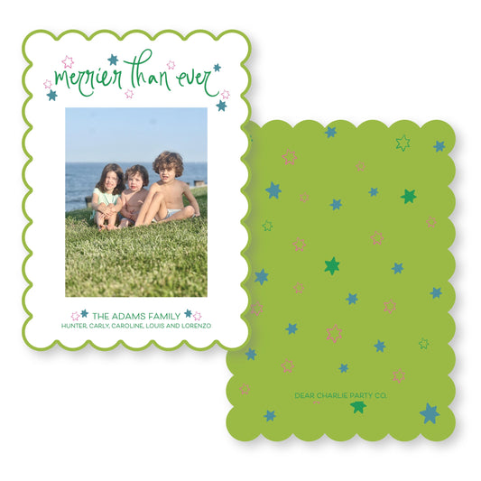 Starry Night Scallop Card in Bright Colors | 5x7 Holiday Photo Card with Envelope
