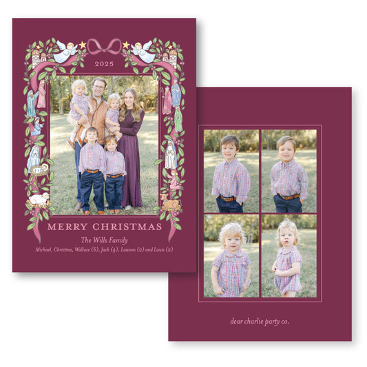 The Nativity Story in Berry | 5x7 Holiday Photo Card with Envelope