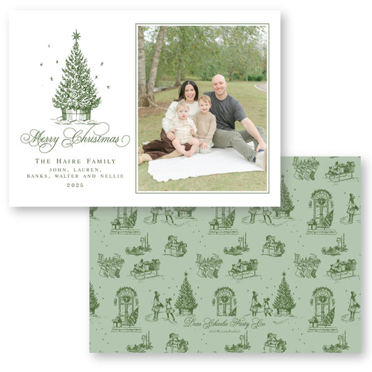 Toile Tidings Holiday Card in Green | 5x7 Holiday Photo Card with Envelope