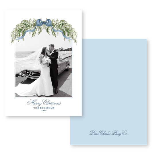 Traditional Glam Dusty Blue Swag | 5x7 Holiday Photo Card with Envelope