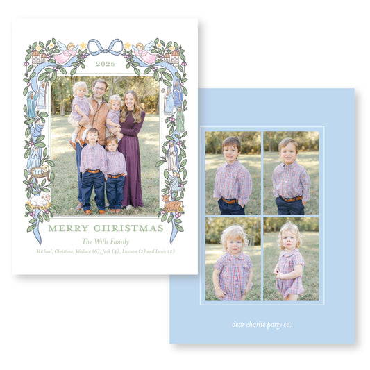 The Nativity Story Pale Blue | 5x7 Holiday Photo Card with Envelope