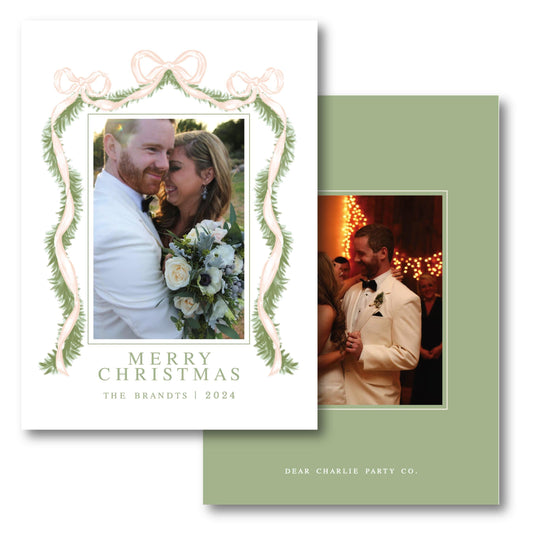 Traditional Glam Red Swag in Green | 5x7 Holiday Photo Card with Envelope