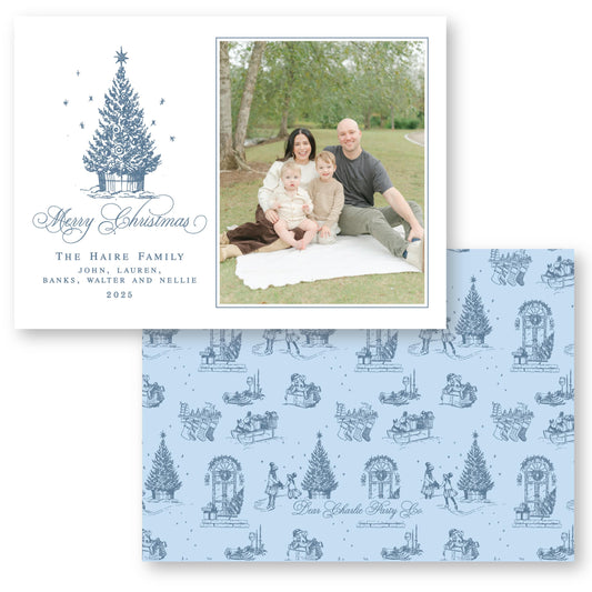 Toile Tidings Holiday Card in Blue | 5x7 Holiday Photo Card with Envelope