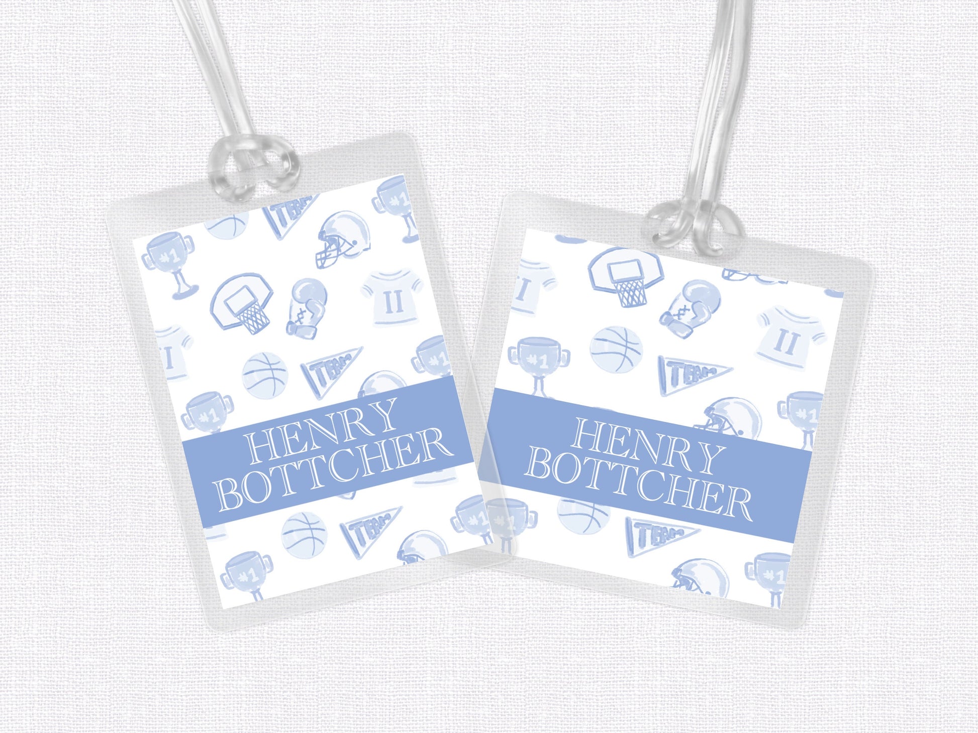 Blue Sports Bag Tag, Luggage Tag, Laminated Bag Tag, Boy Bag Tag