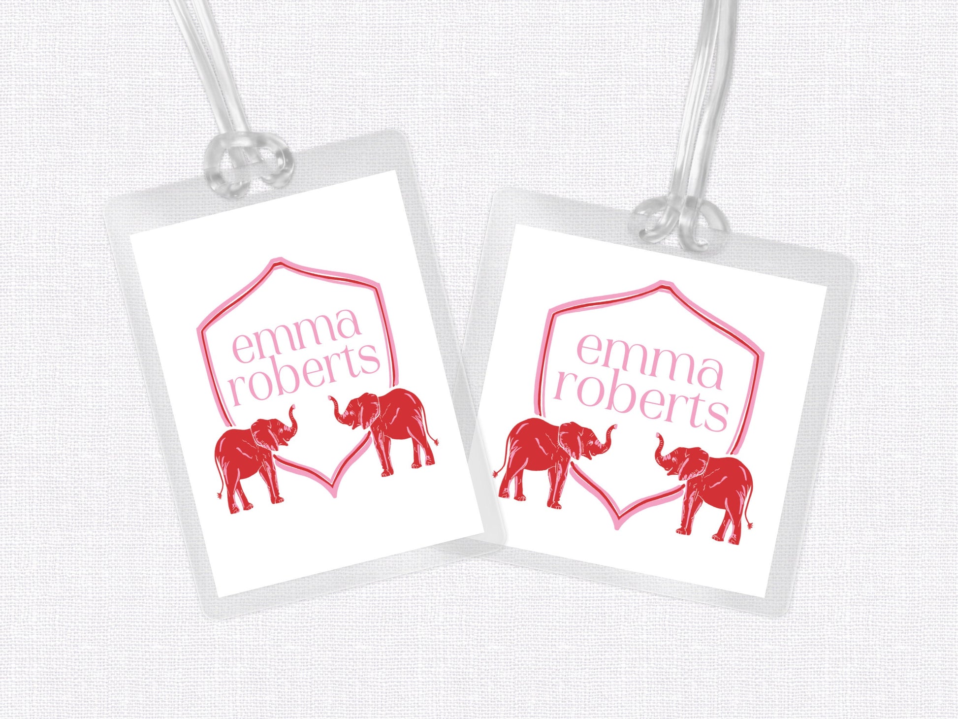 Elephant Crest Bag Tag, Luggage Tag, Laminated Bag Tag, Girl Bag Tag