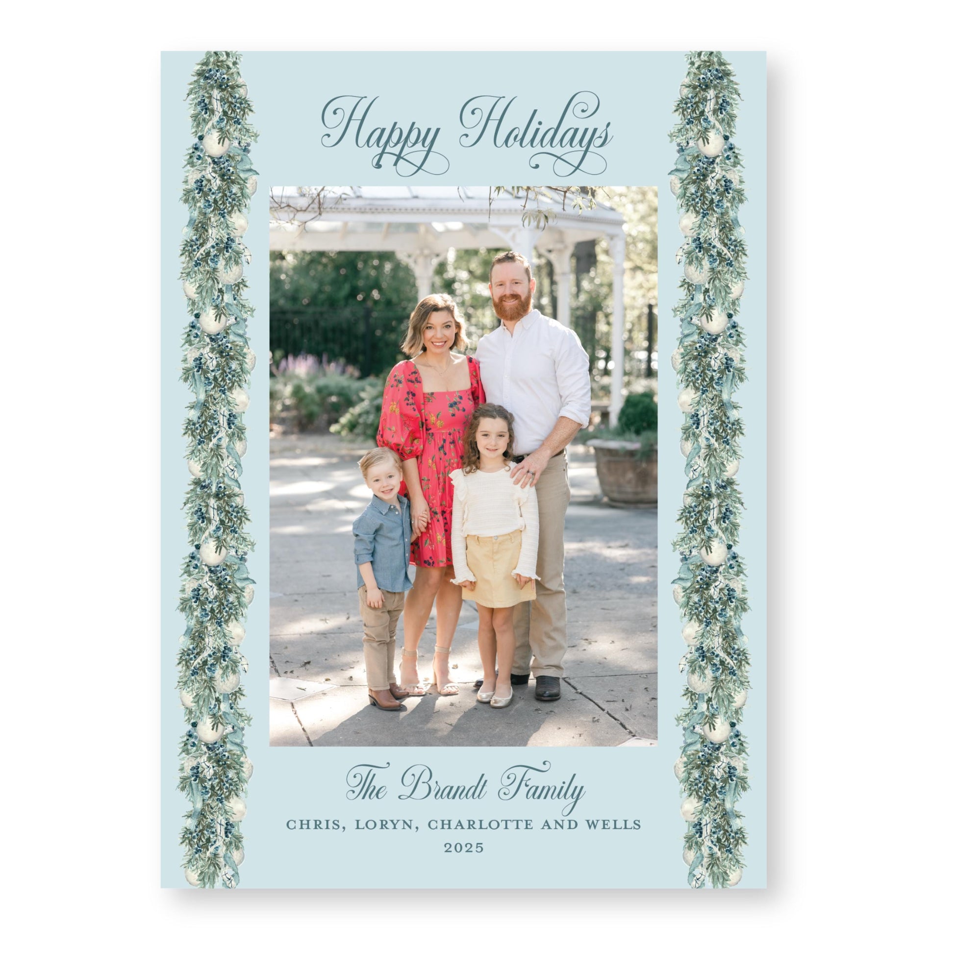 Joyful Juniper Holiday Card, Blue | 5x7 Holiday Photo Card with Envelope