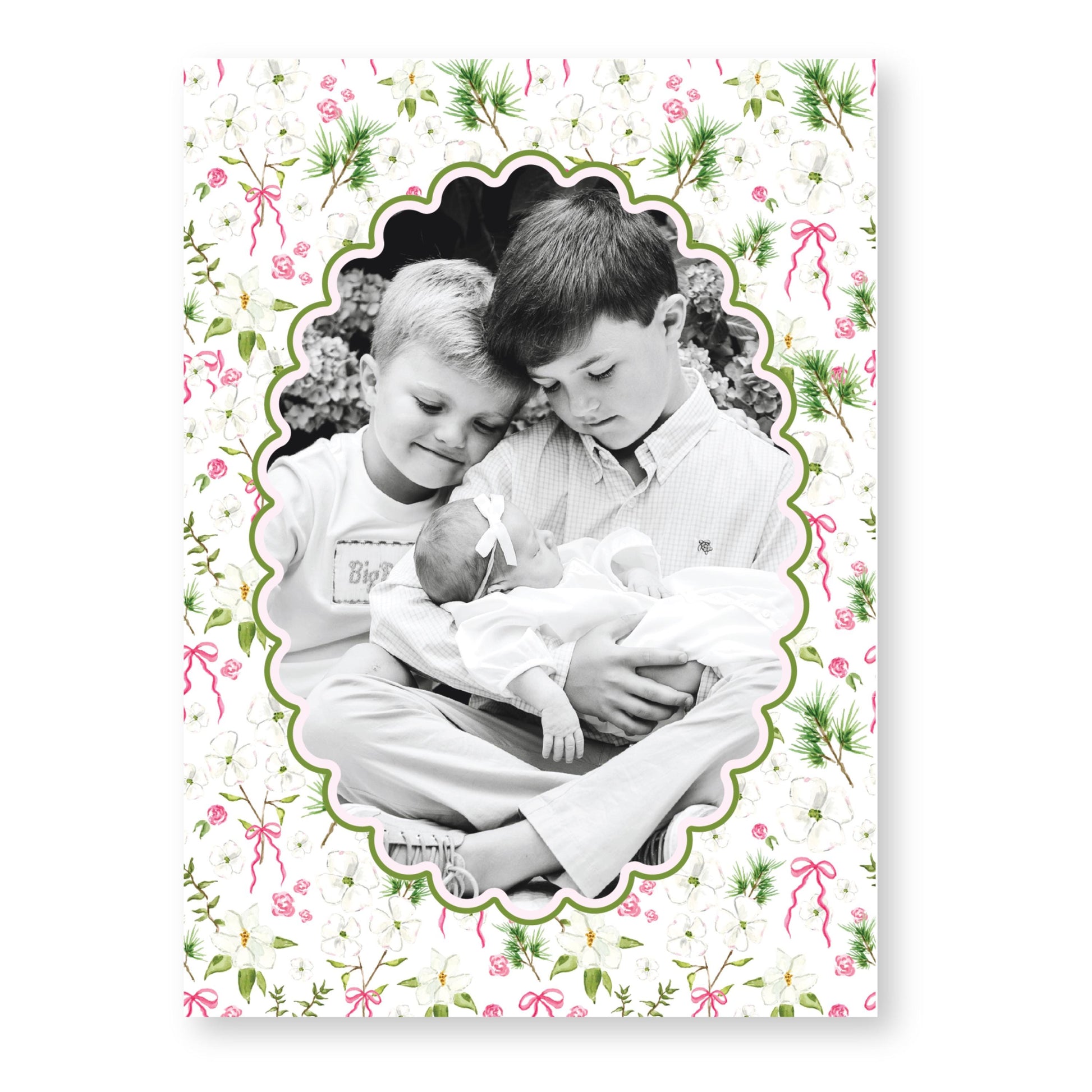 Merry Magnolias in Pink | 5x7 Holiday Photo Card with Envelope