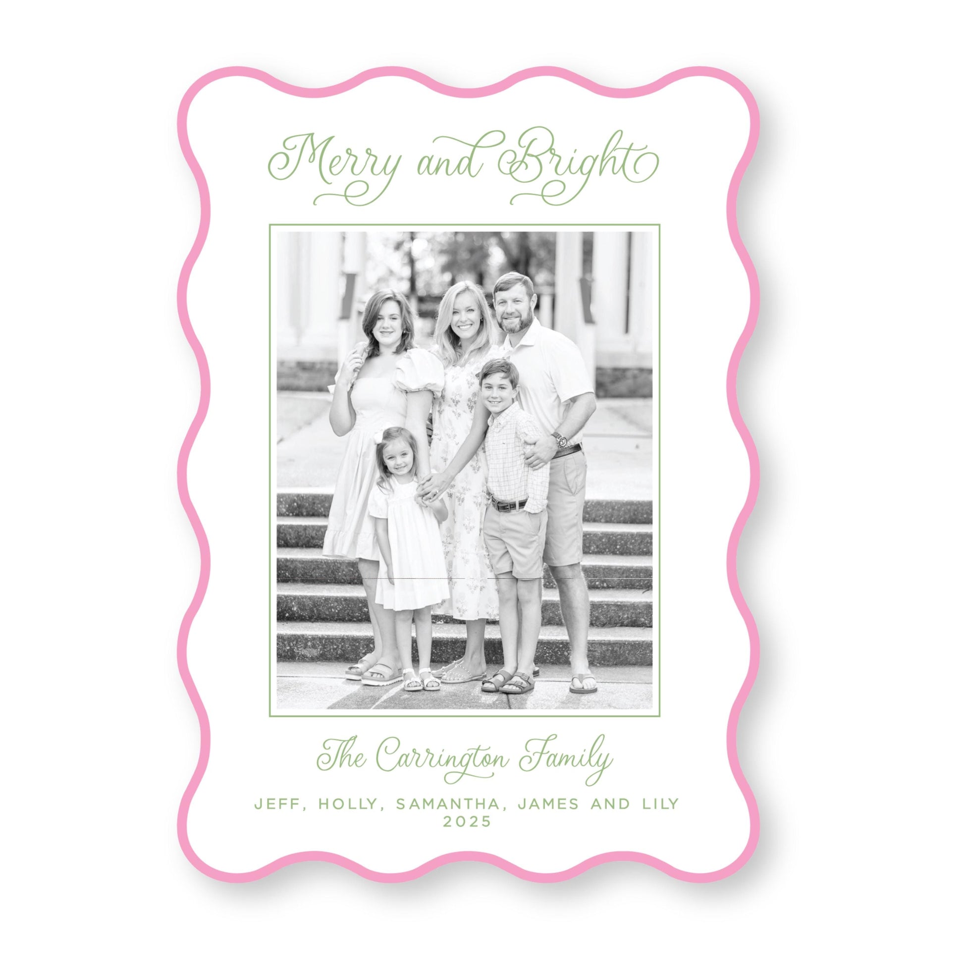 PRINTED Die Cut Holiday Card | Candy Coated Christmas in Pink | 5x7 Holiday Photo Card with Envelope